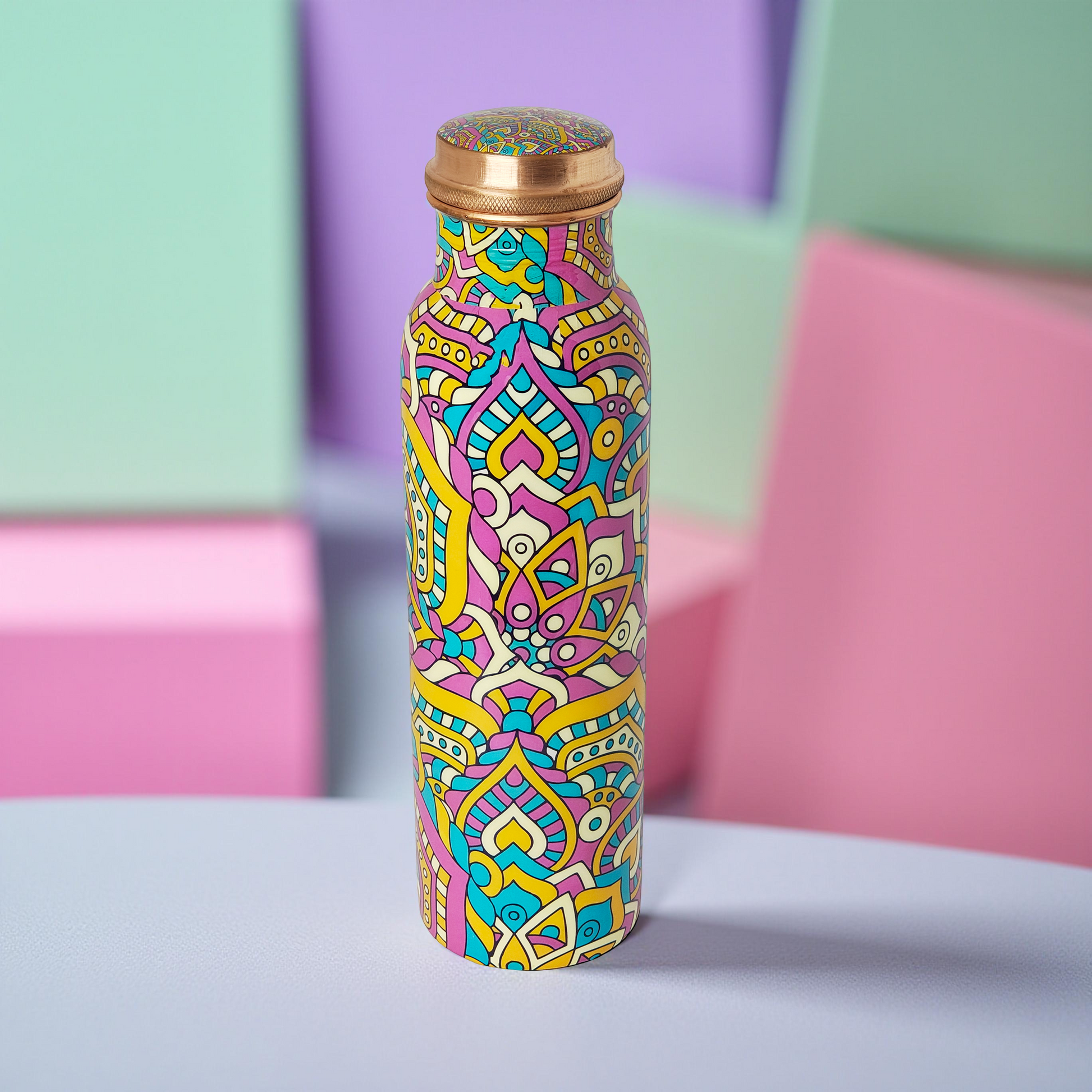 Mandala Design Copper Water Bottle – 1 Litre | Hand-Painted Ayurvedic Wellness Bottle